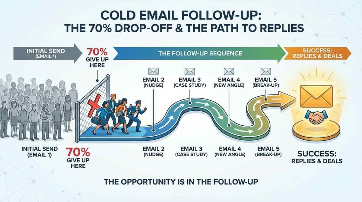 70% of cold emails never get a single follow-up. That's not a typo. Seven out of ten salespeople send one email, hear nothing back, and just... move on. Meanwhile the people who actually follow up? They're closing deals, booking meetings, and wondering why everyone else makes it look so hard.