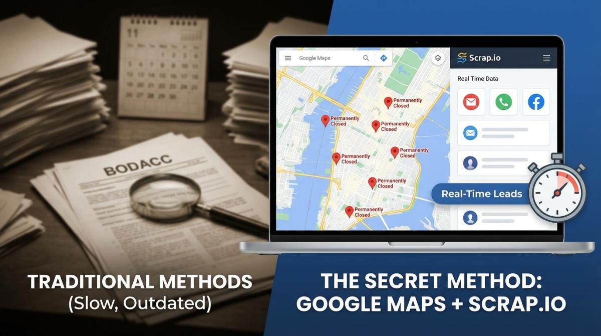Notre recommandation : Utilisez Google Maps + Scrap.io pour la détection précoce. Confirmez avec le BODACC pour la validation juridique. C'est complémentaire.