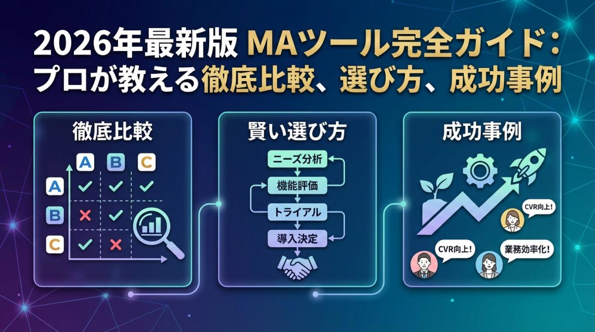 このガイドは違います。ベンダーに忖度なし。2026年最新のマーケティングオートメーション比較から実際の導入事例8件、選び方の5ポイント、そしてほとんどの記事が触れない「MAの効果を左右するリードの質」の話まで——全部まとめました。