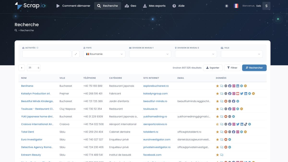 Sursele gratuite — ONRC, ANAF — sunt obligatorii ca punct de plecare pentru verificare firme și date juridice. Platformele românești ca ListaFirme.ro, Termene.ro sau FirmeB2B.ro adaugă filtre avansate, export și date financiare. Dar dacă vrei o bază de date firme cu email și telefon actualizată în timp real, la o fracțiune din costul furnizorilor tradiționali — platformele de extracție live ca Scrap.io sunt într-o ligă diferită.