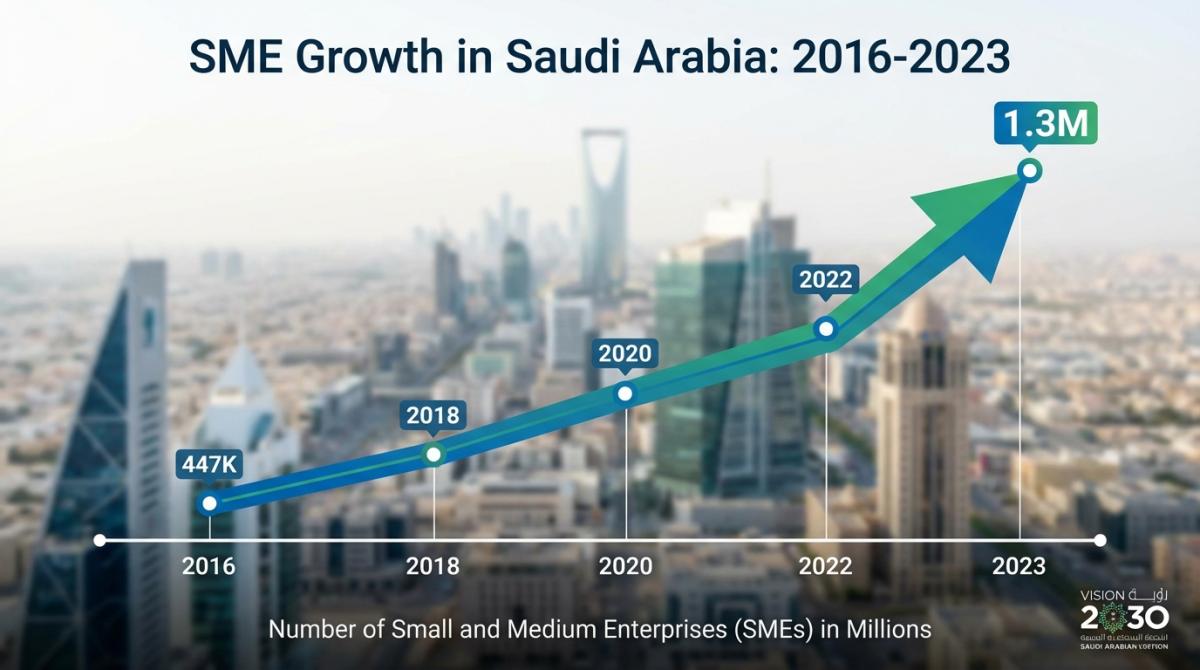 Saudi Arabia's SME sector went from 447,000 businesses in 2016 to 1.23 million in 2023. That's 168% growth. In seven years. I don't know about you but I can't think of many markets anywhere in the world growing that fast. And the government wants more β Vision 2030's target is to push SMEs from 21.9% of GDP all the way to 35%.