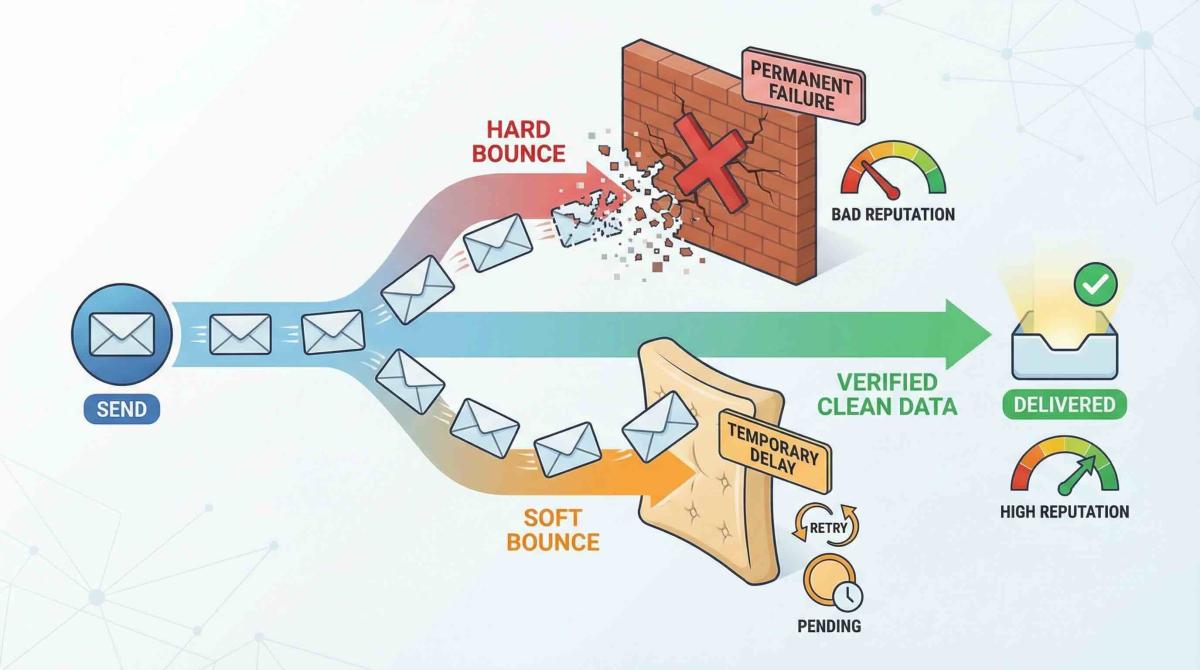 The critical part? There's a huge difference between a permanent failure and a temporary one. That's the whole soft bounce vs hard bounce question. And trust me, mixing them up will cost you.