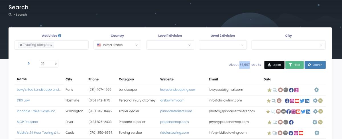 That's it. You can see all 86,607 US trucking businesses in about two clicks.