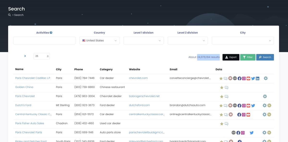 Want dentists in Phoenix with 10-30 employees and no Instagram presence? You can build that exact list. Need restaurant owners in Chicago who have a Google listing but no website? Filter for that — and suddenly you've got a gold list for a web design agency pitch. The more specific your targeting, the better your response rates. Always.
